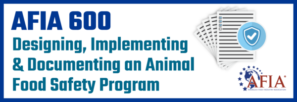 The AFIA 600 course will cover essential topics for manufacturing safe, high-quality animal food, including the Food Safety Modernization Act’s (FSMA) current good manufacturing practices, management commitment and responsibilities, quality and food safety management systems, personnel and training, infrastructure, new product development, product realization, purchasing processes and controls, and verifying a comprehensive animal food safety plan. The AFIA 600 course is ideal for feed and pet food employees who are interested in better understanding FSMA rules and regulations and/or becoming a designated preventive controls qualified individual (PCQI) or joining a PCQI team. The AFIA 600 will be offered as a self-guided, online course consisting of nine webinar-style modules that participants can watch at their own pace during the five-week period. Upon completion of the AFIA 600, participants will be equipped with tools and strategies to establish and maintain a comprehensive safety and quality management system. Participants may also request a certificate of participation upon completion of the modules. For more information and to register for AFIA 600, visit afia.org/AFIA600. |