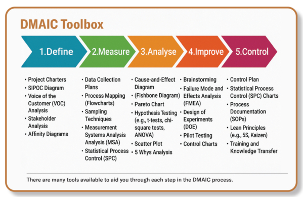 Rooted in Six Sigma principles, DMAIC provides a systematic framework for identifying root causes and creating effective solutions. By employing DMAIC, organizations can address inefficiencies, enhance product quality, and develop and maintain consistent processes.